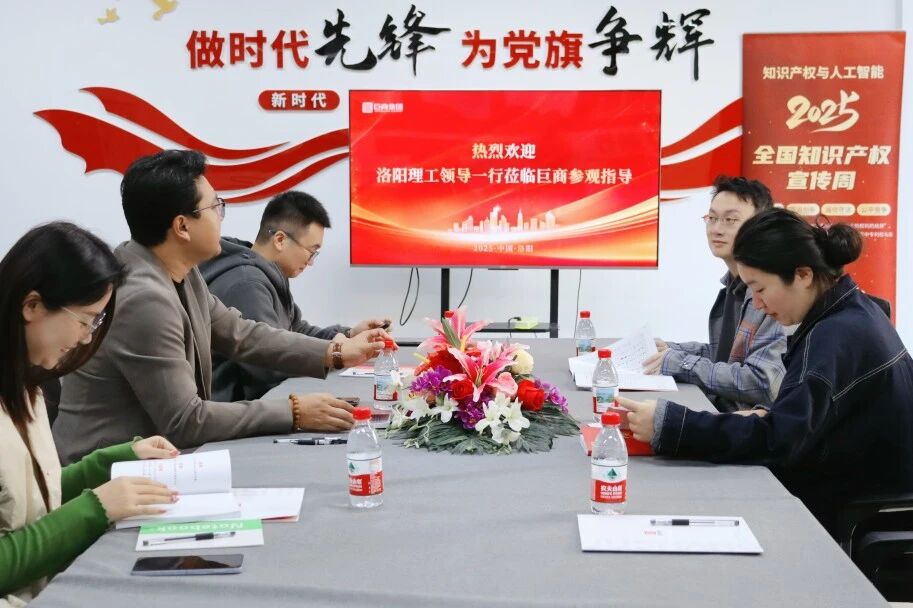 裴总向李茁老师一行深入介绍了巨商的核心业务与创新成果,作为洛阳市知识产权公共服务的重要服务单位,巨商集团为企业提供专利导航、成果转化、维权援助、商业秘密保护等“一站式”服务。同时,在洛阳文旅产业蓬勃发展的背景下,巨商集团加大了对洛阳和全国非物质文化遗产(非遗)和文化创意(文创)的保护与推广力度,为数百家非遗技艺提供了申报服务、设计保护,持续为洛阳文创的发展注入新活力。