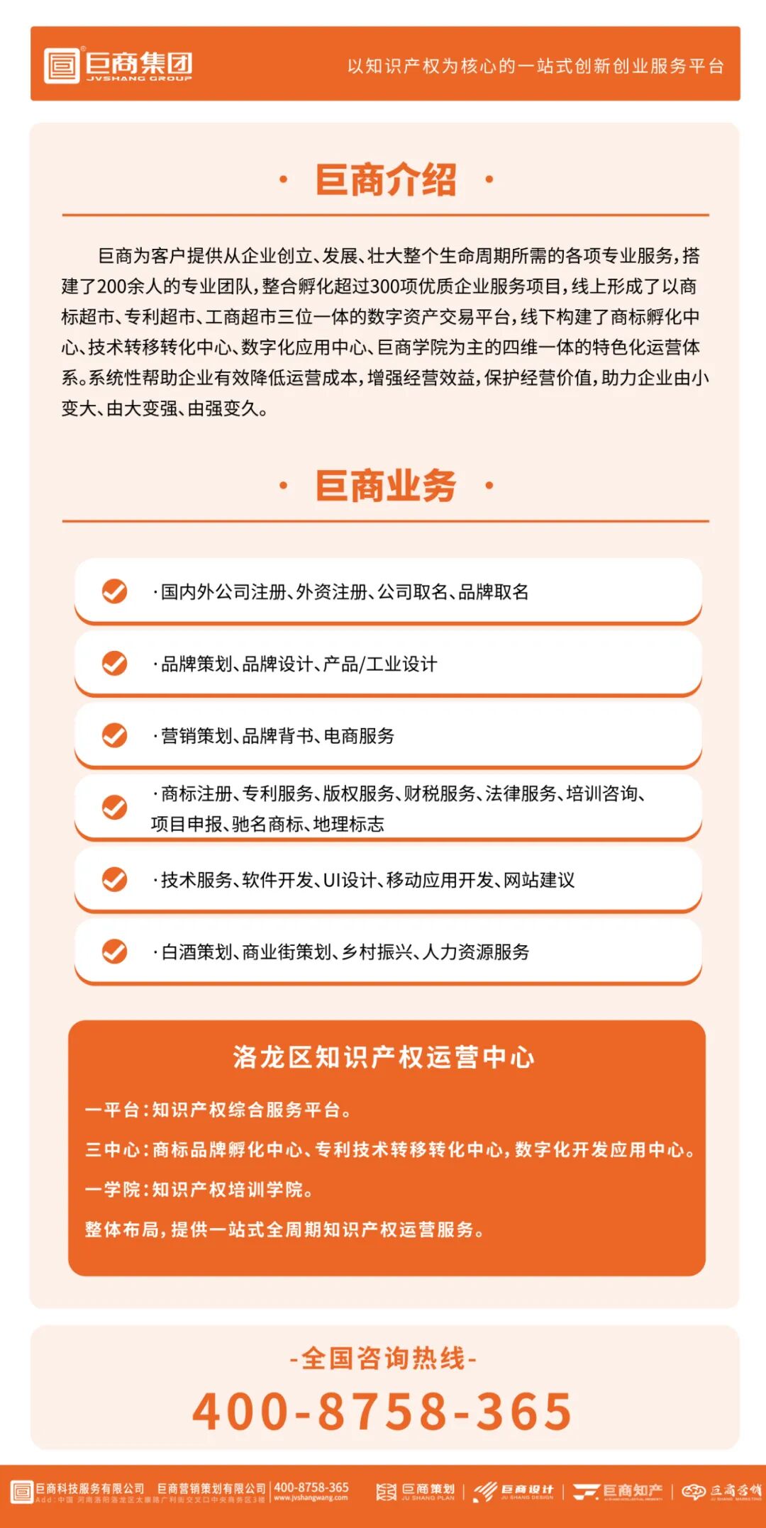 2023年六一儿童节,巨商走进洛阳市洛龙区多所小学开展多场“知识产权进校园”主题活动,为同学们捐赠文具和体育器材的同时,把知识产权保护意识植根校园,为广大青少年营造尊重原创、崇尚创新、诚信守法的氛围。2023年9月,巨商与洛龙区市场监督管理局共同为洛龙区丰李镇东坡社区捐赠商标三个,在打造乡村专属品牌、进一步扩大产品知名度和影响力方面,为东坡社区产业兴旺做好了知识产权保护。2024年1月10日,是第四个中国人民警察节,巨商与洛龙区开元路街道办事处一起为洛阳市公安局洛龙区分局、开元路街道派出所的人民警察送去节日的问候,感谢辖区人民警察守护国家安全、守护人民平安。2023年,巨商科技服务有限公司项目经理彭璐斌的母亲,在社区优秀婆婆的评选中脱颖而出。多年来,彭妈妈通情达理、持家有方、爱护晚辈、团结邻里的事迹广为邻里所称道,她用家庭妇女特有的勤劳、善良、纯朴,用她全身心的爱为家庭和社区和谐贡献着榜样的力量。“获得经济突出贡献企业这一称号,既是一种荣誉,更是一种责任和使命。在各级党委和政府的领导下,巨商集团将继续秉承“创新、务实、诚信、共赢”的企业精神,不断加强企业管理,提高经济效益和市场竞争力,为地方经济发展做出更大的贡献。同时我们深知,企业的发展离不开社区的支持,我们也一直秉持着“取之于社会,回馈于社会”的理念,积极参与社区的各项公益事业,努力为社区做出一份贡献。”